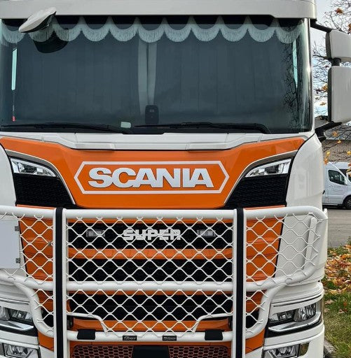Give your Scania truck a clean and customized front look with this Scania Logo Outline Sticker, precisely designed to fit around the original SCANIA emblem on the grille.